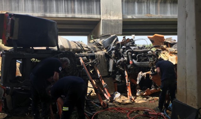 El Consorcio de Bomberos de Huelva ha finalizado su intervención en el accidente del camión caído por el viaducto de la A-49 a la altura de Chucena (Huelva). Así, han excarcelado el cuerpo sin vida de la mujer que había quedado atrapada en el interior de la cabina, mientras que el conductor y los dos menores han sido trasladados a un centro hospitalario, según ha informado el Consorcio.