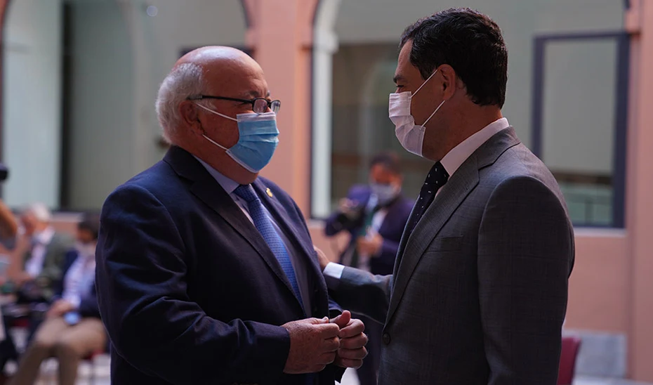 | El presidente de la Junta y el consejero de Salud y Familias, Jesús Aguirre. |